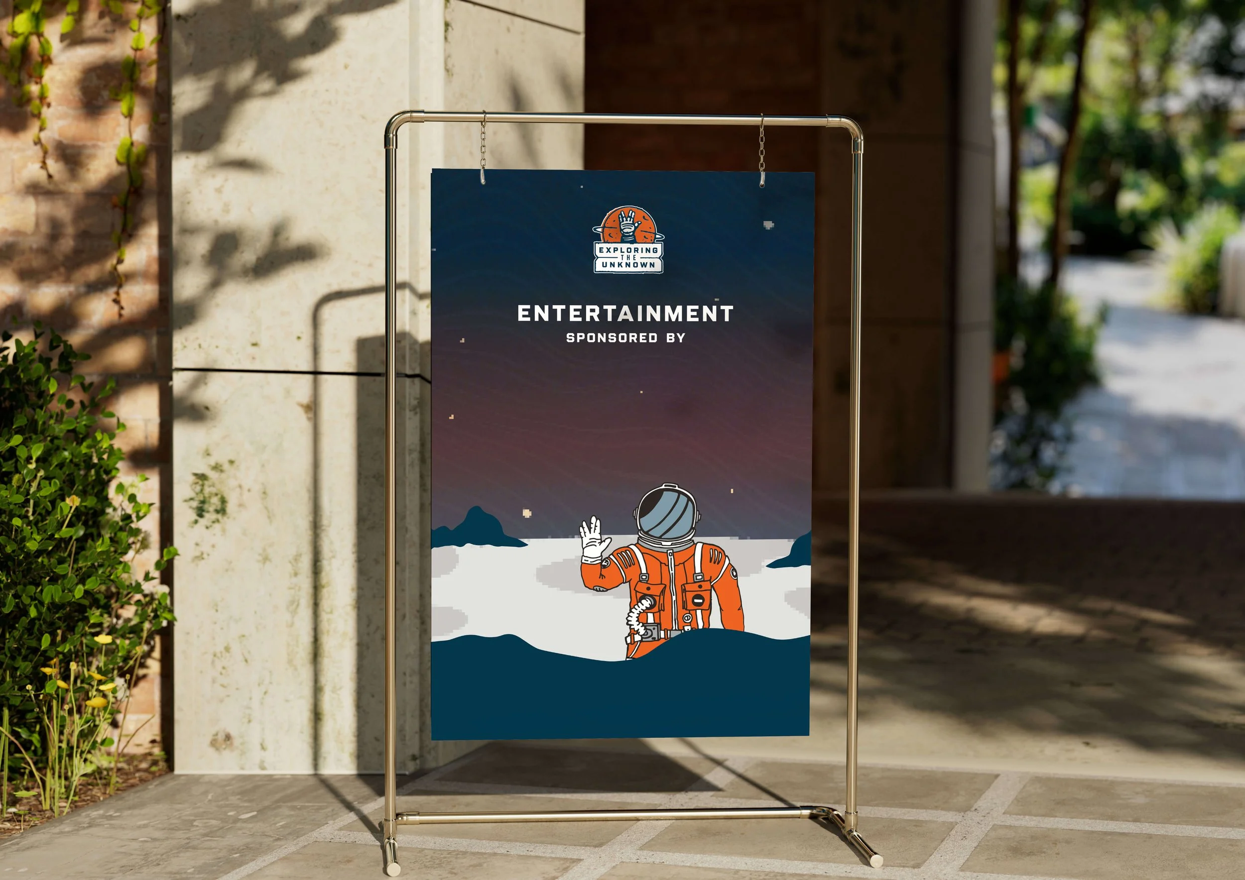 Below are examples of digital and print signage, mobile app graphics, name badges